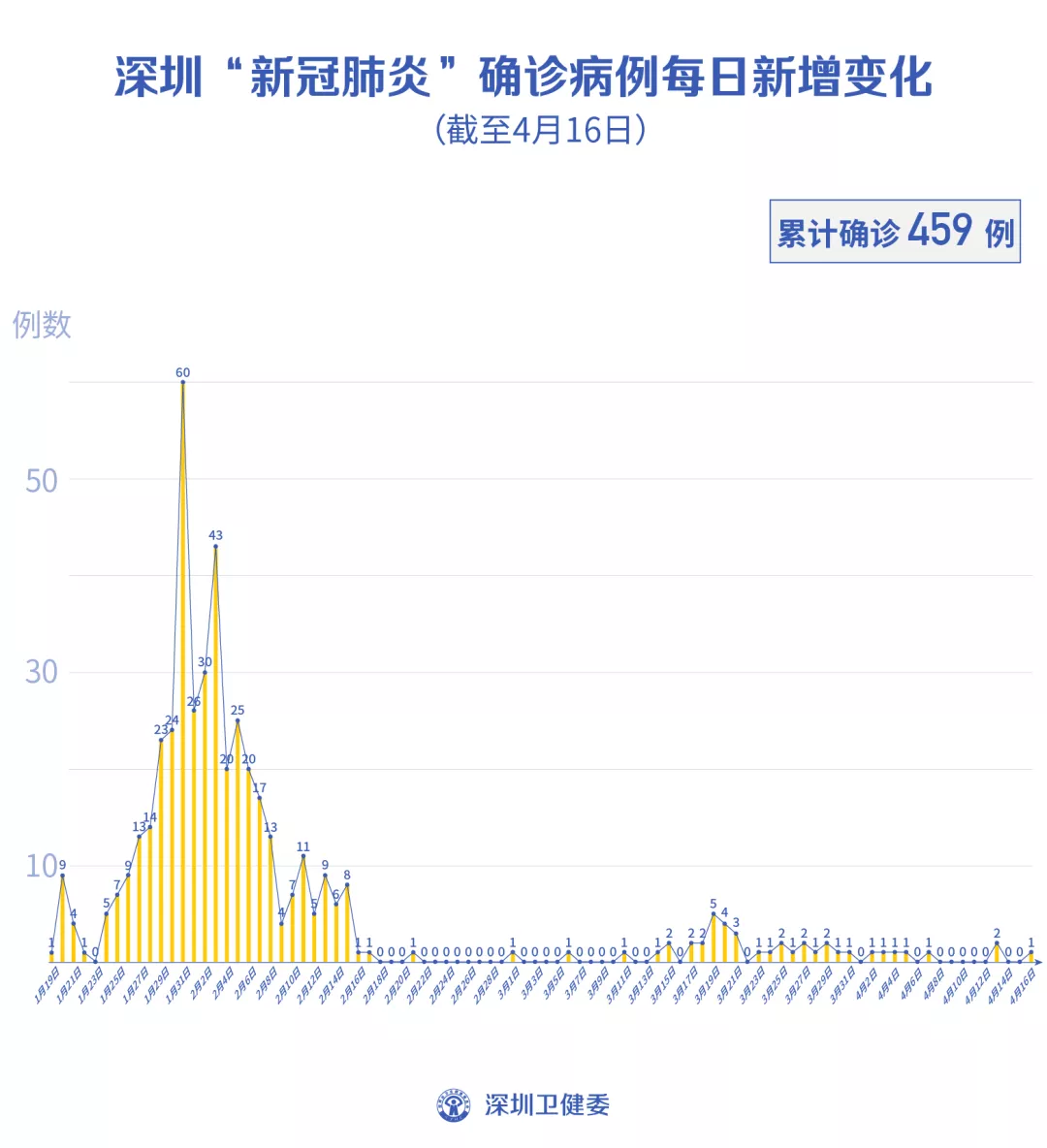 截至4月16日24時(shí),深圳累計(jì)報(bào)告新冠肺炎病例459例。4月16日當(dāng)天新增境內(nèi)病例1例,新增無(wú)癥狀感染者1例。