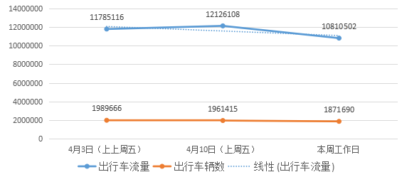 交警部門預(yù)計(jì),今天周五晚高峰,出行車輛的次數(shù)會(huì)依然處于高位。經(jīng)對(duì)15時(shí)至21時(shí)全市出行車輛情況統(tǒng)計(jì),4月3日(上上周五)全市出行車流量1178.51萬(wàn)輛次,出行車輛198.97萬(wàn)輛;4月10日(上周五)全市出行車流量1212.61萬(wàn)輛次,出行車輛196.15萬(wàn)輛。結(jié)合本周工作日全市出行車輛情況,深圳交警預(yù)計(jì)4月17日(本周五)全市出行車流量較工作日稍有增加,增加約9.34%,達(dá)1182.97萬(wàn)輛次。