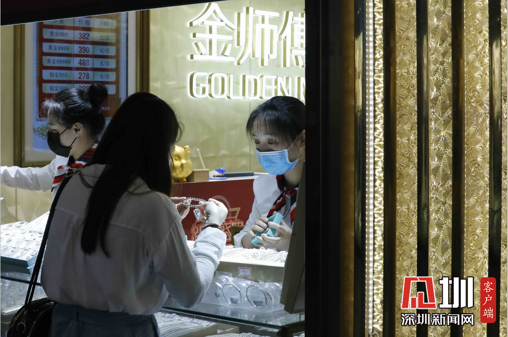 東門(mén)步行街的手機(jī)配件門(mén)店前,兩位市民正在選購(gòu)。