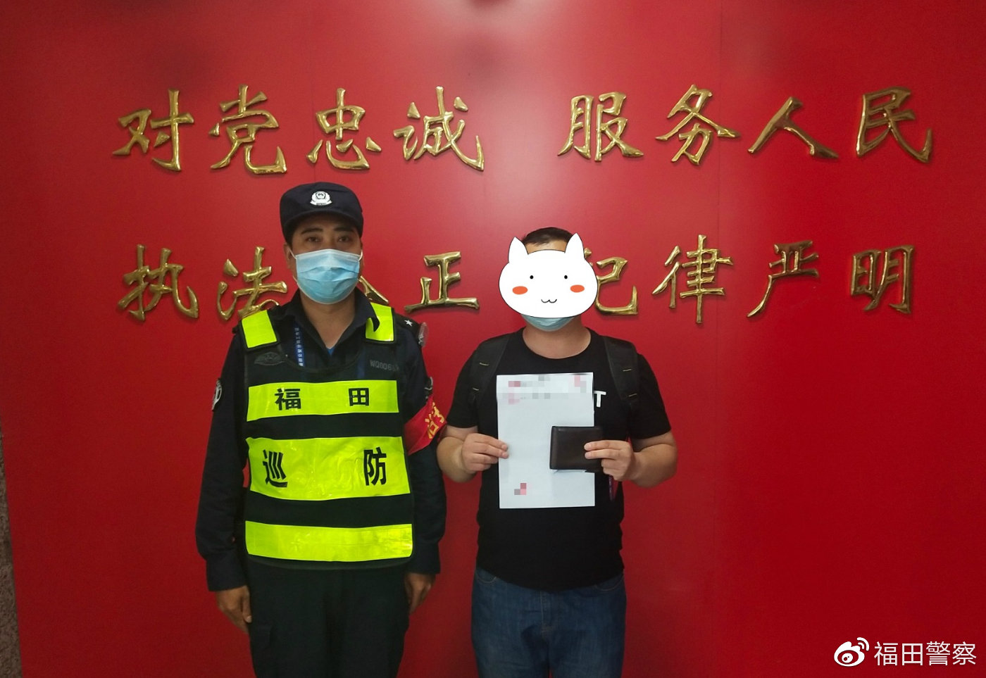 4月5日上午,深圳市公安局福田分局南園派出所隊(duì)員段忠孝在回所交接班路途中,在地上發(fā)現(xiàn)一個遺落的錢包,打開仔細(xì)一看,內(nèi)有銀行卡、社???、身份證、現(xiàn)金410元人民幣等物品,還有一張外出務(wù)工人員健康證明。
