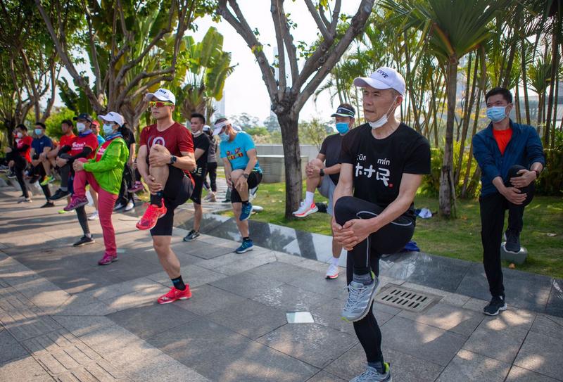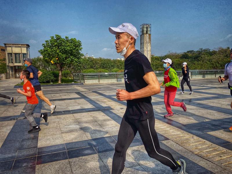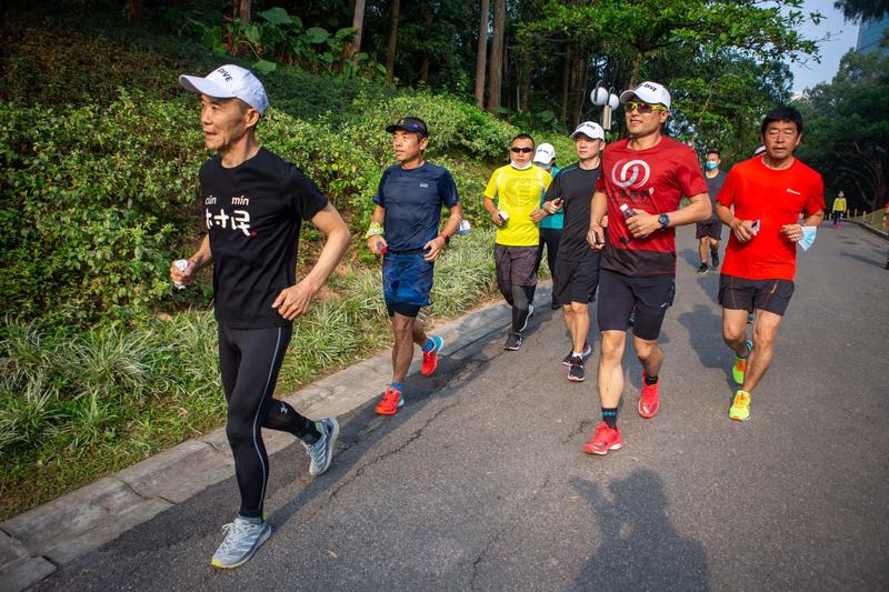 今天的登山活動,其實從蓮花山西門的跑步開始的。不到十分鐘,王石等就達到了蓮花山頂,隨后從山頂下山,跑步3.5公里到達蓮花山與市民中心的連廊平臺,在此完成拉伸后,整個登山和跑步活動完美結束。