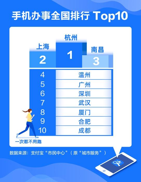 4月21日,支付寶“市民中心”發(fā)布的全國手機辦事排行榜顯示,已有超過300城的市民服務(wù)能在手機上完成。其中,杭州、上海、南昌等地的市民能在手機上辦的事最多。