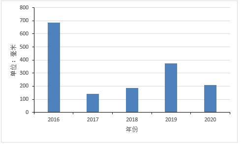 (近5年4月1-26日深圳市平均累計雨量變化)