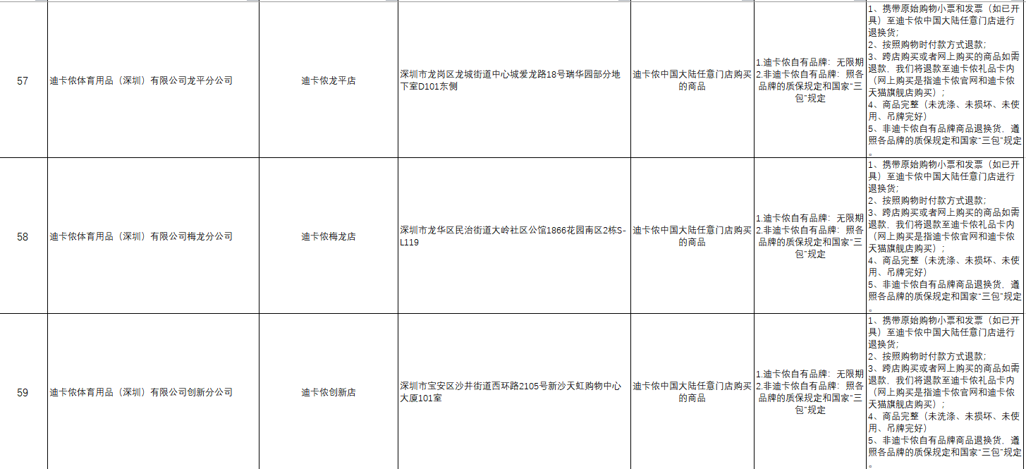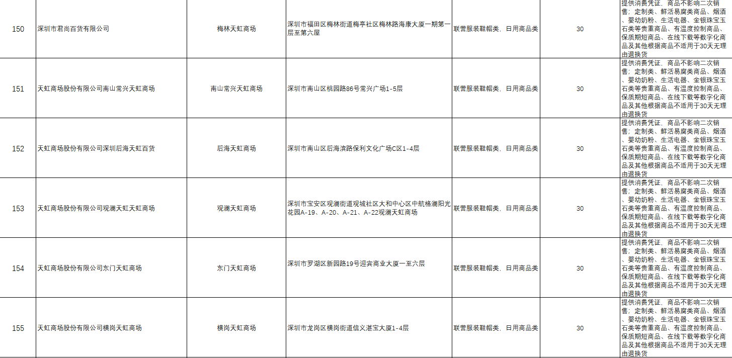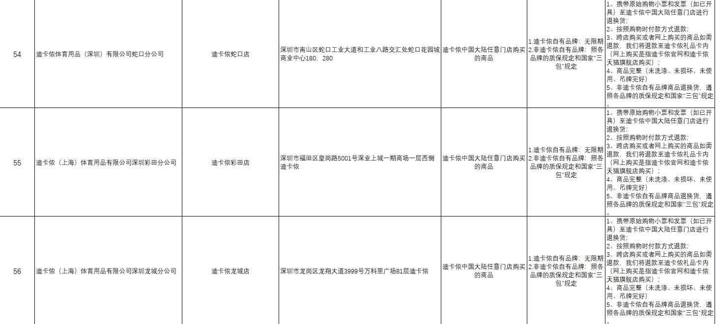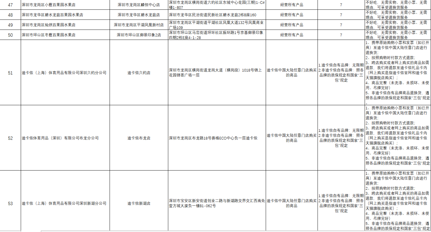 “首批參與的部分企業(yè)承諾遠高于活動基本要求,退貨期限不止是7天?!笔邢瘯嚓P(guān)負責人舉例說,天虹商場聯(lián)營服裝鞋帽類和日用商品類承諾的退貨限期為30天,錢大媽和迪卡儂自有品牌承諾無退貨限期。