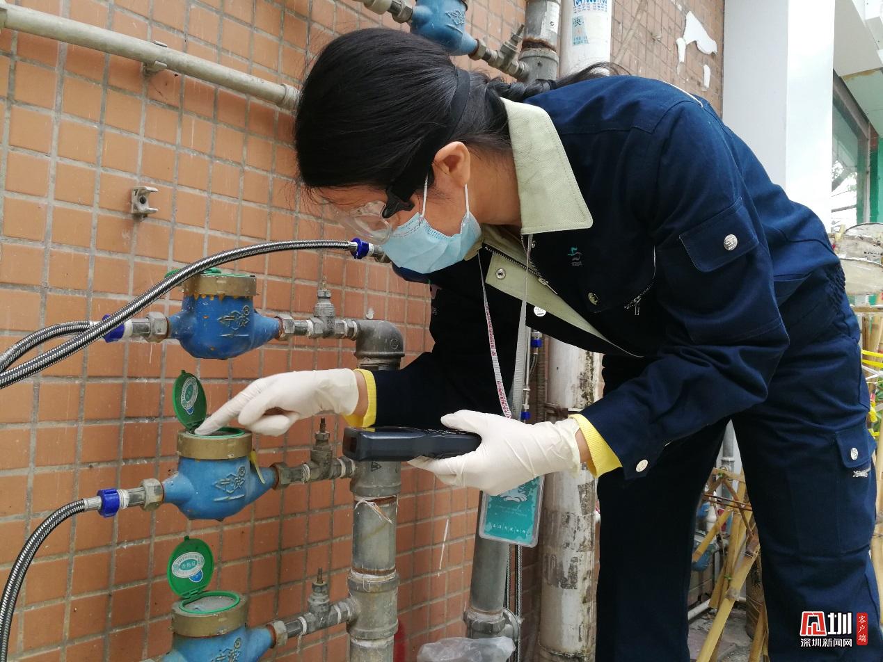 為準確讀取疫情期間市民的用水信息,南山分公司抄表員陳秋斐,在做好防護工作后,前往小區(qū)讀取水表。