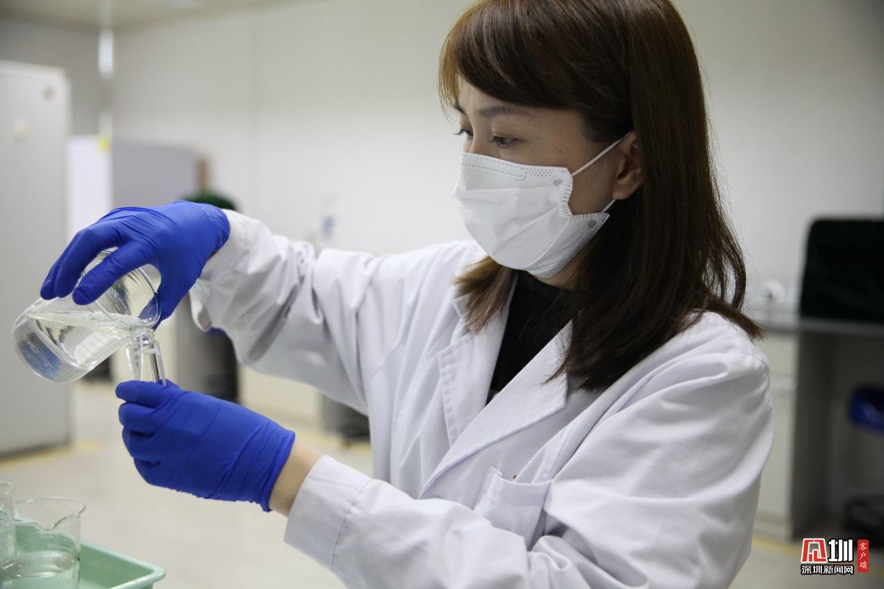光明水務公司水質化驗員陳寶珠,正一絲不茍檢測水質。