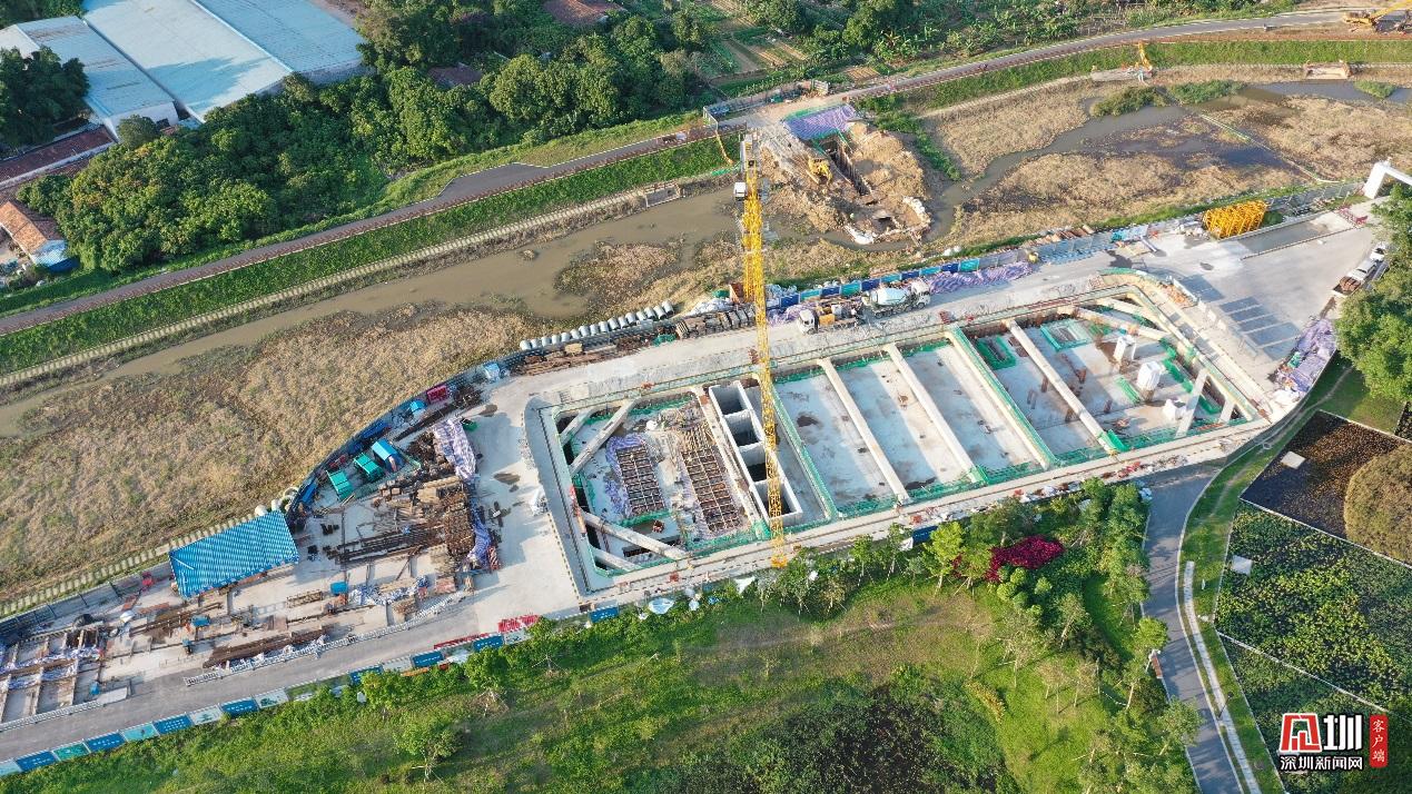 新陂頭干流調蓄池施工現場。為追趕進度,搶抓工期,光明 EPC消黑項目部爭分奪秒,全面向著完工節(jié)點出發(fā)。