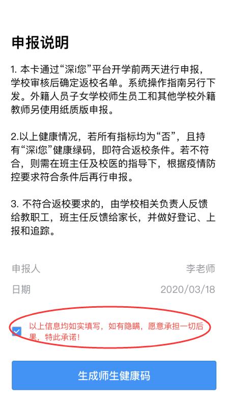 見圳客戶端·深圳新聞網(wǎng)2020年5月2日訊 深圳初三高三的學(xué)長學(xué)姐們已經(jīng)返校了,非畢業(yè)班的學(xué)弟學(xué)妹們接下來也將陸續(xù)返校。據(jù)深圳市教育局消息,5月2日(今天)開始,師生要在“深i您-自主申報(bào)”平臺的開學(xué)專區(qū)進(jìn)行健康信息申報(bào),符合條件的才可以返校。