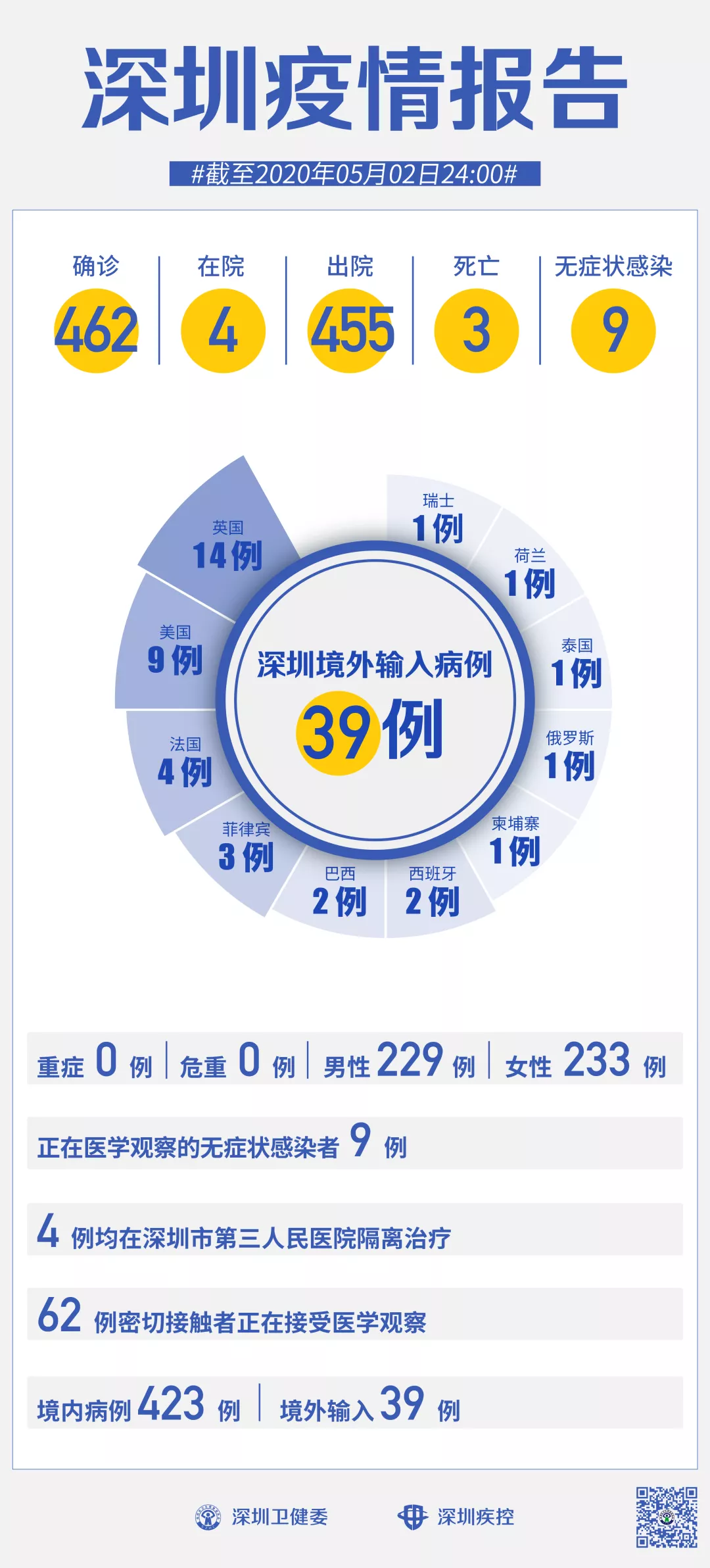 截至5月2日24時(shí),深圳累計(jì)報(bào)告新冠肺炎病例462例。