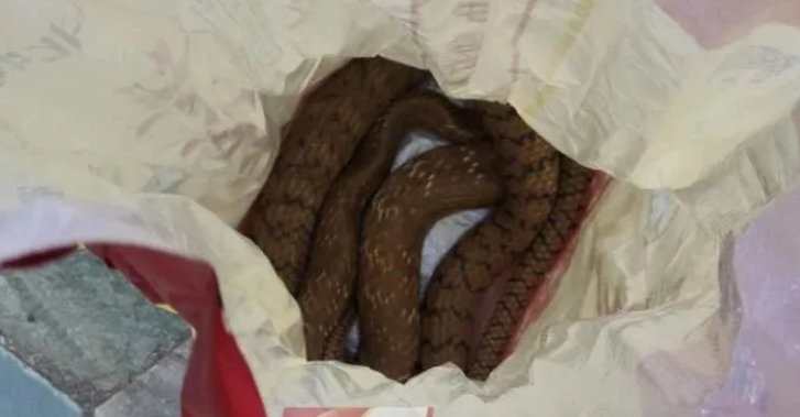 最近,兩條體型碩大的蛇突然在蓮花山公園人行道旁邊的草叢出沒,隨后,一名公園內的保安人員徒手捕捉了兩條蛇。