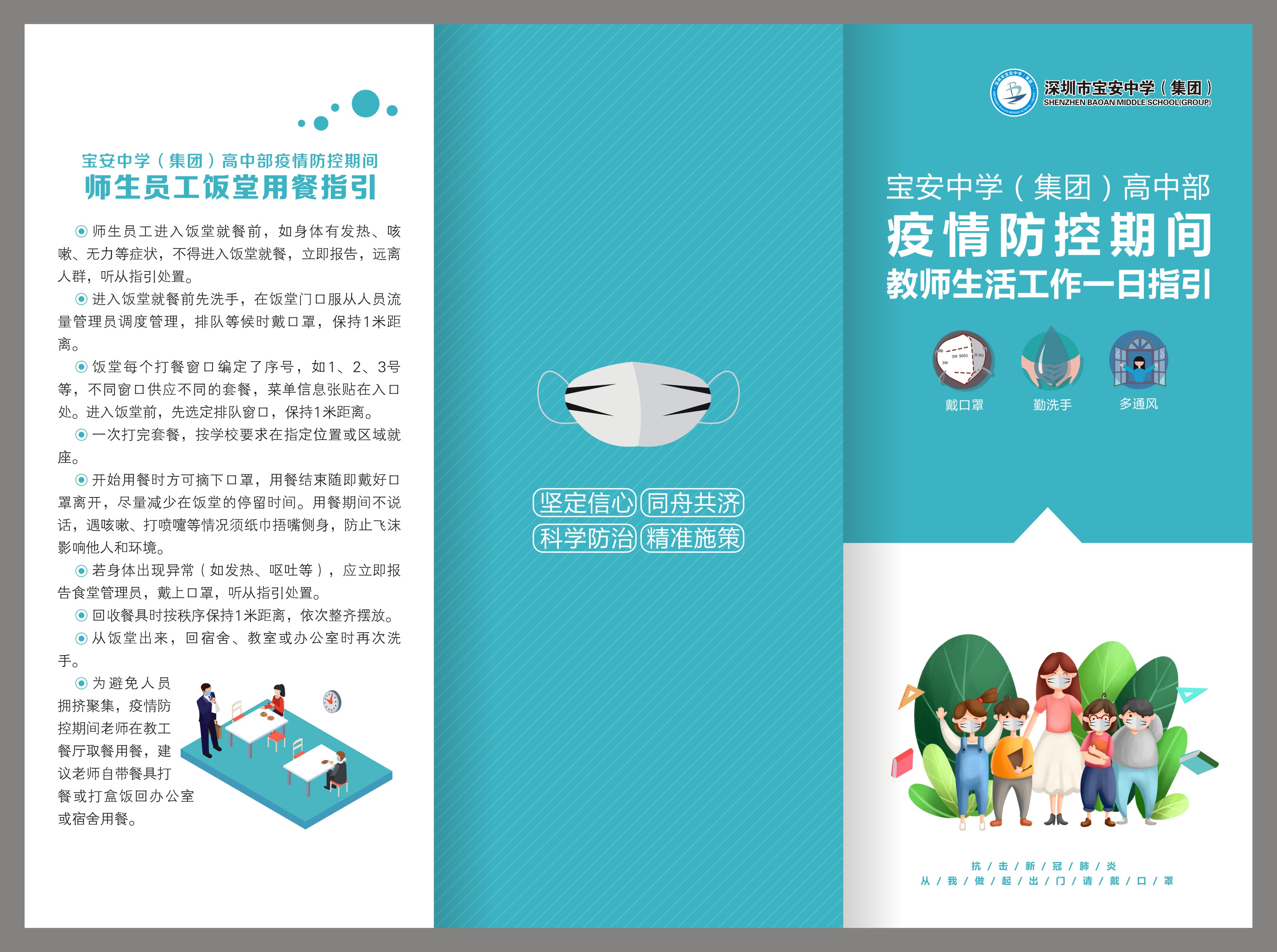 早在3月,返校復課的相關準備工作就已經(jīng)在緊鑼密鼓地推進中。為了規(guī)范師生返校復課各項措施和要求,在深圳市教育局發(fā)布復課防控疫情工作指引之前,彭鍛華就結合疫情形勢變化與學校實際,提出制定寶中集團的《學生學習生活一日指引》《教師工作生活一日指引》,對在校師生每天各個 時段 、各個 地點 的學習、工作和生活做出了明確指引。