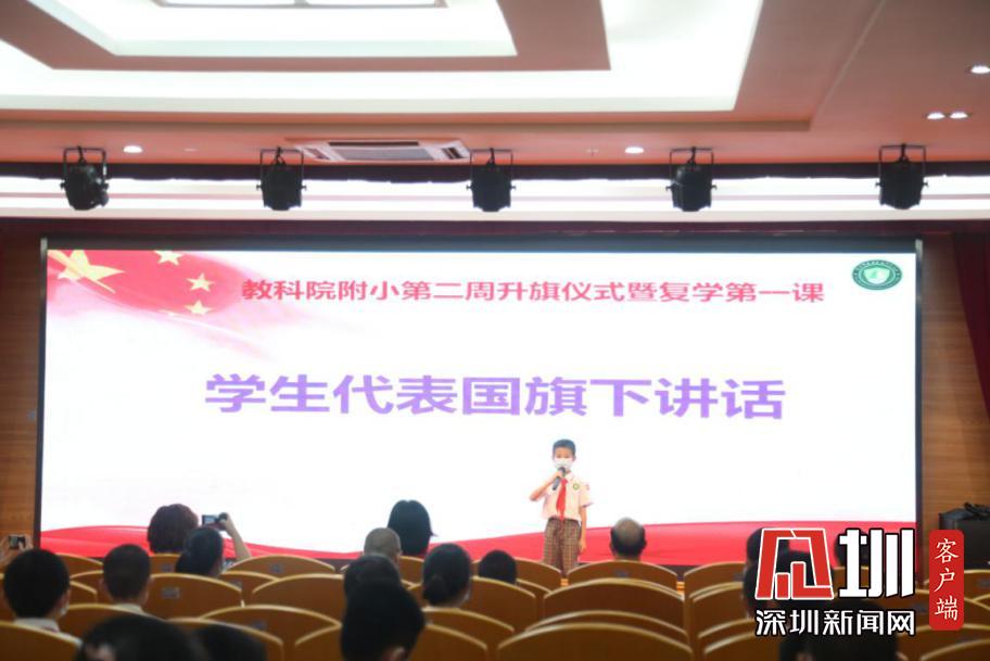 以“喜迎生歸校復(fù)蘇,附小蓓蕾從‘新’綻”為主題的教科院附小2020年春季復(fù)學(xué)第一課準(zhǔn)時(shí)開始,各班級(jí)的學(xué)生帶著口罩,單人單桌在教室內(nèi),以觀看直播的方式參加典禮。升旗儀式在詹雪蓮主任以及小主持人激情澎湃的聲音中拉開了帷幕。