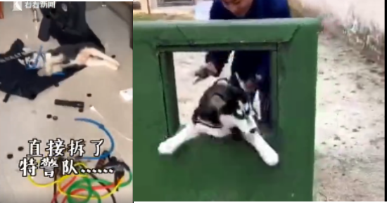 最近,云南某特警隊和消防隊的小哥哥想挑戰(zhàn)不可能。于是收養(yǎng)了兩只二哈,一只叫不拆一只叫八萬,都是有正式編制的警犬。