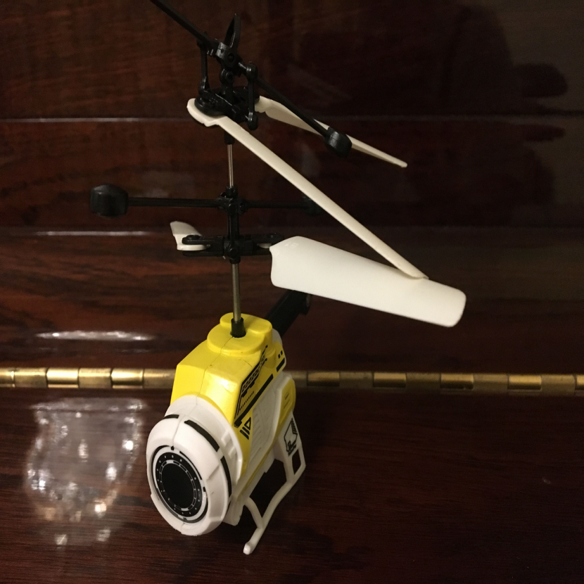 ▲這是我的高科技玩具,感應(yīng)飛行器,它的機(jī)殼上有一個(gè)體外紅外線裝置,使它一碰到物體就能自動(dòng)感應(yīng)到障礙避開(kāi)飛行。