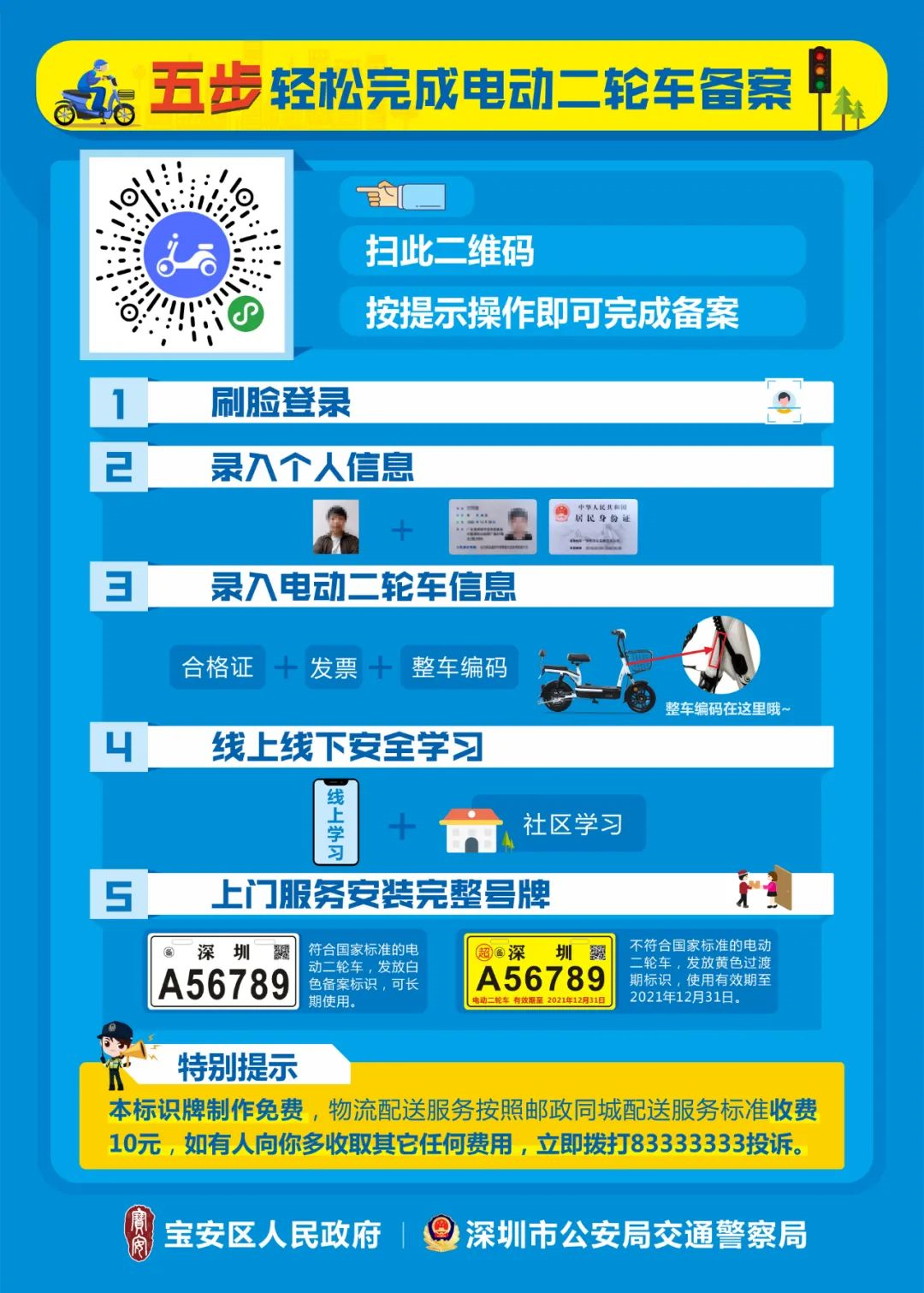 現(xiàn)階段,電動(dòng)車備案試點(diǎn)工作僅在寶安區(qū)、光明區(qū)開(kāi)展,一圖看懂電動(dòng)車備案流程