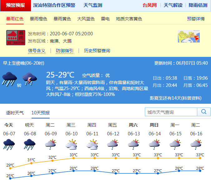 【深圳市鹽田區(qū)、大鵬新區(qū)分區(qū)暴雨橙色預警升級為紅色】