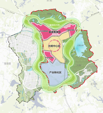 光明科學(xué)城北起深莞邊界,東部和南部以光明區(qū)轄區(qū)為界,西部以龍大高速和東長路為界,規(guī)劃總面積99 平方公里。