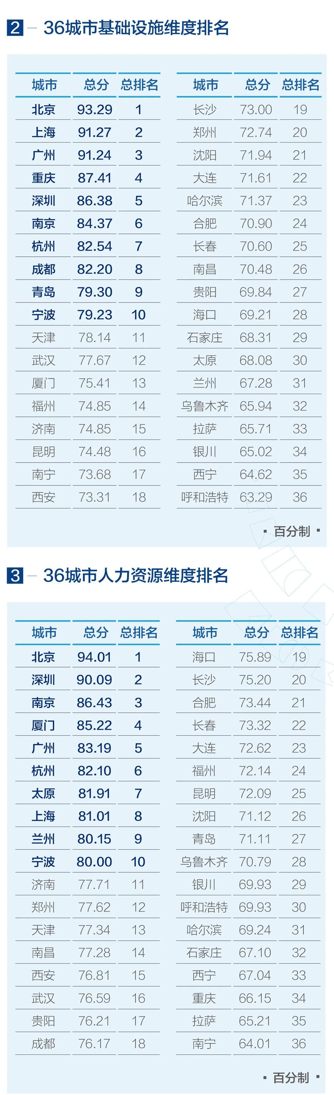 北京、上海、深圳、廣州、重慶、南京、杭州、成都、天津、寧波在綜合評價排名中位列前十。