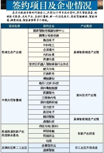 26個(gè)簽約公司中,10家為高端智能制造產(chǎn)業(yè),8家為新興技術(shù)產(chǎn)業(yè),4家為創(chuàng)新產(chǎn)業(yè)研發(fā),2家為高端智能制造產(chǎn)業(yè),2家為舊工業(yè)區(qū)升級(jí)改造,這些將為航城的建設(shè)和發(fā)展注入新動(dòng)力。
