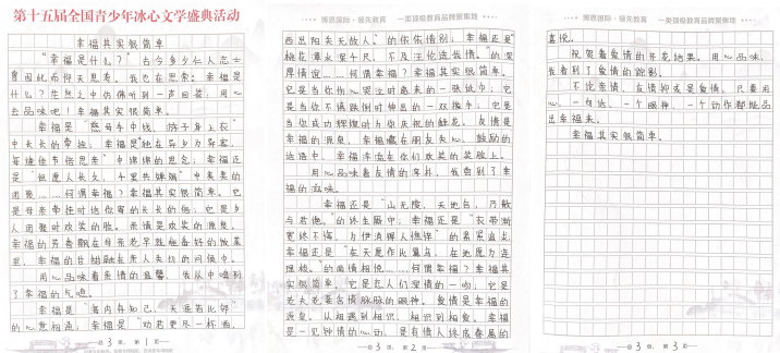 據(jù)活動(dòng)組委會(huì)相關(guān)負(fù)責(zé)人介紹,“第十五屆全國(guó)青少年冰心文學(xué)盛典”以“2020文學(xué)之路,向上的力量”為主題,全程公益免費(fèi),設(shè)置了小學(xué)低年級(jí)組(1-3年級(jí) )、小學(xué)高年級(jí)組(4-6年級(jí) )、初中組、高中組、大學(xué)組、教師組、文學(xué)愛(ài)好者組等多個(gè)組別。值得注意的是,所有報(bào)名選手必須使用本次活動(dòng)專用稿紙進(jìn)行書(shū)寫(xiě)創(chuàng)作。組委會(huì)將會(huì)根據(jù)選手報(bào)名提交的郵寄地址免費(fèi)郵寄活動(dòng)專用稿紙,每人僅限領(lǐng)取5張。選手完成手寫(xiě)作品以后,將作品掃描或拍照發(fā)送到全國(guó)青少年冰心文學(xué)寫(xiě)作指導(dǎo)中心深圳組委會(huì)指定郵箱szbxwx@126.com(冰心文學(xué)深圳)或gdbxwx@126.com(冰心文學(xué)廣東)。