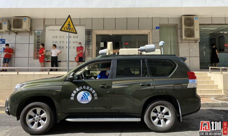 深圳中學考點外無線電監(jiān)測管理站工作車輛在現(xiàn)場進行保障任務(wù)。