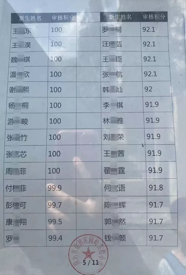 2020年福田區(qū)公辦小一新生錄取名單來(lái)了,部分學(xué)校最低錄取積分曝光