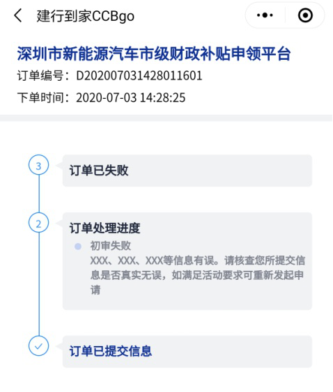如客戶初審、終審失敗,重新進入“深圳市新能源汽車市級財政補貼申領平臺”發(fā)起申請即可。