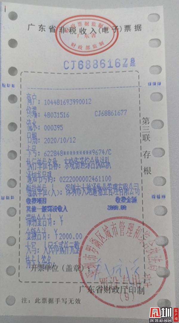 深圳新聞網(wǎng)訊 (見(jiàn)圳客戶端、深圳新聞網(wǎng) 記者 彭桂紅 通訊員 吳清慶)9月1日,《深圳市生活垃圾分類管理?xiàng)l例》正式實(shí)施,經(jīng)過(guò)一個(gè)月的執(zhí)法警示期,10月起,深圳垃圾分類進(jìn)入集中執(zhí)法階段,對(duì)不開(kāi)展垃圾分類等行為正式開(kāi)罰。記者10月14日獲悉,深圳市羅湖區(qū)東曉街道執(zhí)法隊(duì)10月12日,開(kāi)出轄區(qū)首張物業(yè)罰單,對(duì)深圳市大地通物業(yè)管理有限公司因垃圾分類投放點(diǎn)和收集容器未保持整潔立案查處,作出罰款人民幣2000元的行政處罰。行政處罰相對(duì)人已依法繳納罰款。