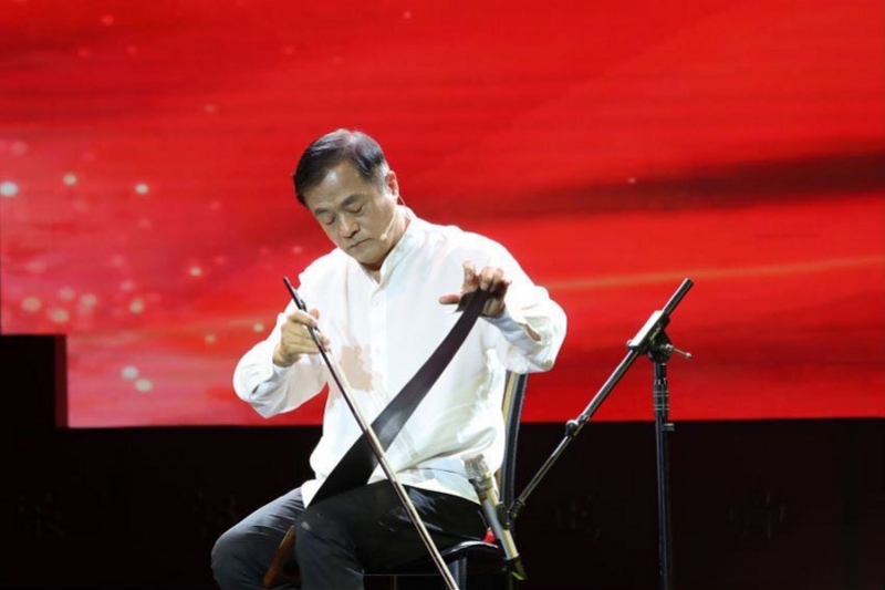 隨后,《鋸琴藝術(shù)》傳承人李元慶在不斷變換鋸片彎曲角度、拉動(dòng)馬尾弓期間,奏出一首長(zhǎng)達(dá)近4分鐘的悠揚(yáng)樂曲。他說,自己拉了30年鋸琴,希望讓更多人了解這門非遺藝術(shù)。在他的鼓勵(lì)下,觀眾席里兩名小學(xué)生舉手上臺(tái),用鋸琴敲出長(zhǎng)短不一的音符。
