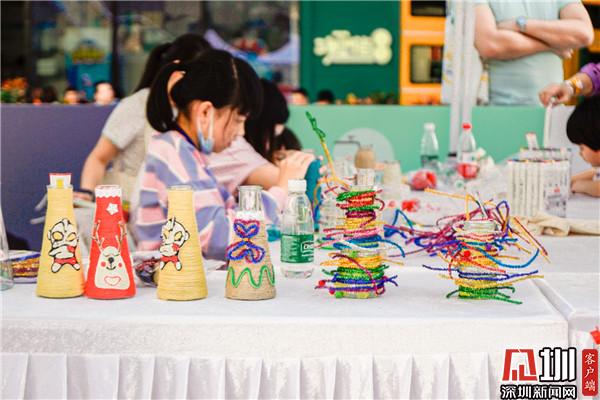 在羅湖,各個(gè)會(huì)場(chǎng)的活動(dòng)堪稱精彩紛呈,除了街道,商圈活動(dòng)更是熱潮迭起。水貝商圈的羅湖IBC環(huán)球商務(wù)中心外庭北廣場(chǎng)從11月7日下午即開始廣泛宣傳,有趣的環(huán)保達(dá)人集市如藍(lán)曬DIY、牛奶瓶華麗變身、環(huán)保袋彩繪等活動(dòng)吸引了眾多市民、親子家庭甚至“老外”參加,除了環(huán)保集市,這里也設(shè)有物物交換、各種新奇好玩的游戲,還有減量觀影會(huì)等形式多樣的活動(dòng),讓人們玩轉(zhuǎn)玩嗨垃圾減量。