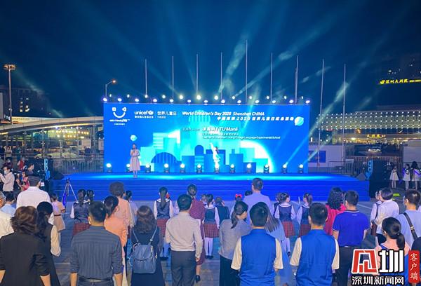 亮燈活動(dòng)在紅嶺小學(xué)學(xué)生管樂(lè)團(tuán)演奏的“童話(huà)地球”和“召喚英雄”以及螺嶺外國(guó)語(yǔ)實(shí)驗(yàn)學(xué)校合唱歌曲《我的創(chuàng)意我的夢(mèng)想》中拉開(kāi)序幕。當(dāng)晚8點(diǎn),20名羅湖區(qū)兒童代表和20名深港跨境學(xué)童代表用象征兒童友好的藍(lán)色之光點(diǎn)亮了京基100、平安銀行大廈、地王大廈、國(guó)貿(mào)大廈、東門(mén)步行街、羅湖口岸、蓮塘口岸等多個(gè)深圳地標(biāo)建筑?!?0年再出發(fā),點(diǎn)亮兒童未來(lái)”的活動(dòng)主題和“打造兒童友好型城市”等字樣呈現(xiàn)在地標(biāo)建筑上,閃耀在夜空,把鵬城的夜晚點(diǎn)綴得格外美麗。