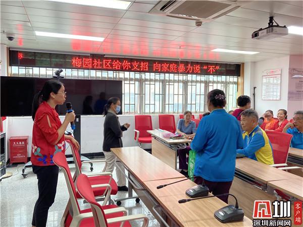 見圳客戶端·深圳新聞網(wǎng)11月25日訊(記者 劉嘉敏 通訊員 梁嘉麗 張亮亮)每年的11月25日也被稱為“國際消除家庭暴力日”,隨著時代的發(fā)展,大家對家暴的認知,不只是普遍認知的身體虐待,更多的是關(guān)注,情感的冷遇和言語的辱罵所帶來的傷害。怎樣才是對待親人的合適方式?學(xué)會向家庭暴力說“不”,社工給您支招。11月24日下午,在深圳羅湖區(qū)清水河街道梅園社區(qū)黨群服務(wù)中心開展了一場“反家暴”宣講活動,預(yù)防和制止家庭暴力,保護家庭成員的合法權(quán)益。