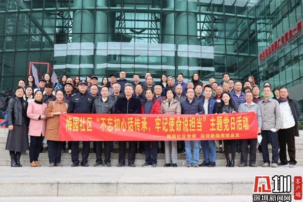 見圳客戶端·深圳新聞網(wǎng)12月18日訊(記者 彭桂紅 劉晨 通訊員 陳秋珊 紀(jì)楚苗)12月17日下午,深圳市羅湖區(qū)清水河街道梅園社區(qū)黨委組織社區(qū)各黨支部書記、老年人協(xié)會黨支部黨員一行30余人,來到深圳報業(yè)集團(tuán)參觀交流黨建工作。自2020年8月至2021年底,深圳新聞網(wǎng)黨總支部掛點(diǎn)聯(lián)系羅湖區(qū)清水河街道梅園社區(qū),雙方結(jié)對共建,當(dāng)天,雙方在深圳報業(yè)集團(tuán)開展了一場“不忘初心話傳承,牢記使命說擔(dān)當(dāng)”主題黨日活動。市紀(jì)委監(jiān)委駐報業(yè)集團(tuán)紀(jì)檢監(jiān)察組組長、報業(yè)集團(tuán)黨組成員陳鵬出席活動。