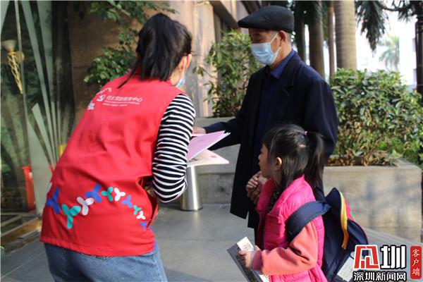據(jù)社工介紹,每個(gè)月社區(qū)都會(huì)舉行義工外展宣傳,本次外展除了設(shè)置常規(guī)的義工宣傳、招募;還根據(jù)政府的號(hào)召,面向全體社區(qū)居民,特別融入了倡導(dǎo)“留深過(guò)年齊抗疫”環(huán)節(jié)。通過(guò)義工向居民發(fā)放留深過(guò)年倡議書(shū)、留深過(guò)年有獎(jiǎng)問(wèn)答等方式,呼吁更多人留在深圳過(guò)年,以不同的方式為社區(qū)抗疫作出貢獻(xiàn)。