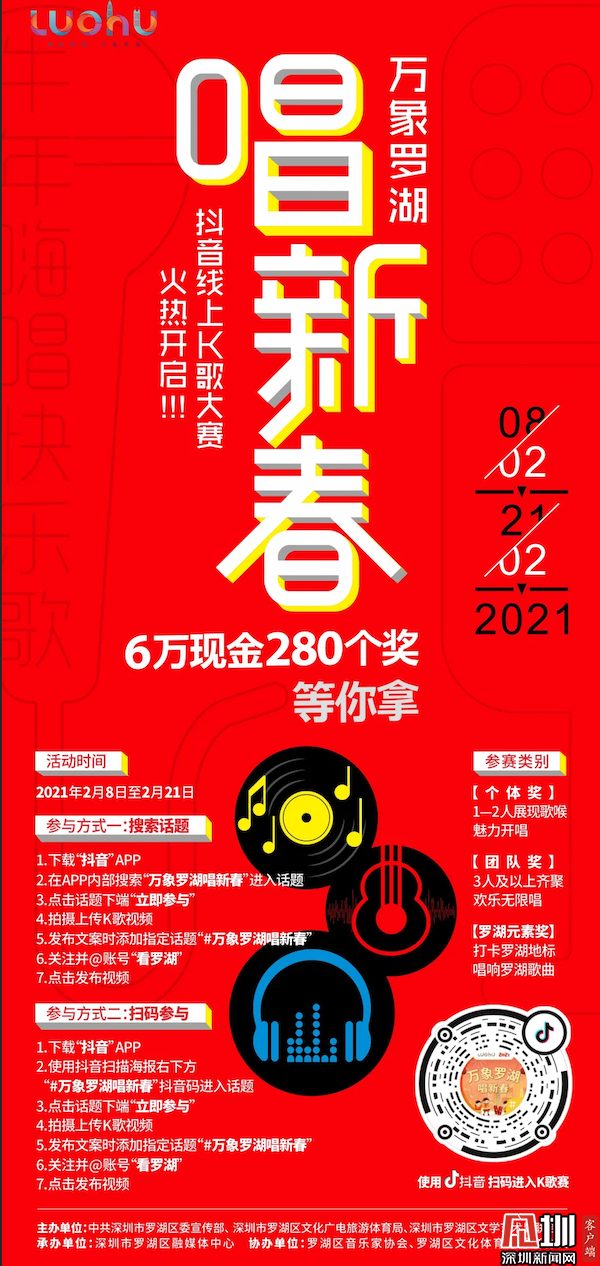 掃碼參與“萬象羅湖唱新春”抖音線上k歌大賽。