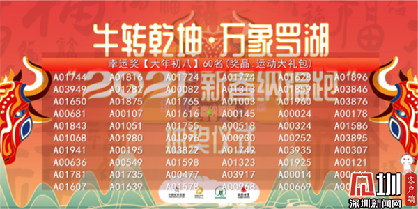 值得一提的是,本次活動不限地域、不限時間,不僅得到了羅湖市民的熱捧,也得到了深圳各個區(qū)域和深汕特別合作區(qū)的市民積極參與,讓新春的福氣遍布深圳。春節(jié)假期期間,在深圳的各個公園和綠道都能看到市民運動的身影,同時為了鼓勵留深人員,積極參與活動,組委會精心準(zhǔn)備了200余份運動大禮包,分別在除夕、正月初二、正月初五、正月初八、元宵節(jié)分五次隨機抽取幸運者獲得運動大禮包。