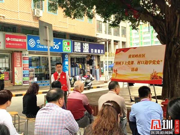 見圳客戶端·深圳新聞網(wǎng)3月12日訊(記者 郭含笑 通訊員 潘霈穎)為深入學(xué)習(xí)貫徹習(xí)近平總書記在黨史學(xué)習(xí)教育動(dòng)員大會上的重要講話精神,全面貫徹落實(shí)黨中央、省委、市委、區(qū)委關(guān)于黨史學(xué)習(xí)教育的決策部署,深圳市羅湖區(qū)黃貝街道黃貝嶺社區(qū)于3月12日下午開展“榕樹下講黨課、村口邊學(xué)黨史”主題黨日活動(dòng)。黃貝街道黨工委副書記、辦事處主任鐘遠(yuǎn)鋒以及轄區(qū)黨員、居民共30余人參與此次活動(dòng)。