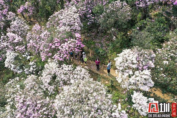 見圳客戶端·深圳新聞網(wǎng)3月16日訊(記者 劉晨 實習(xí)生 覃鈺清)近日,位于深圳羅湖區(qū)的梧桐山毛棉杜鵑陸續(xù)進(jìn)入盛花期,點綴在山間的毛棉杜鵑燦爛盛開,蜂蝶飛舞間,將深圳的南國春意渲染得更加濃烈。不少市民游客前往梧桐山賞花踏青,飽覽春意。