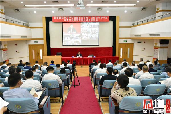 見(jiàn)圳客戶(hù)端·深圳新聞網(wǎng)4月8日訊(記者 劉嘉敏/文 見(jiàn)習(xí)記者 邱婕/圖)4月7日,羅湖區(qū)委理論學(xué)習(xí)中心組暨全區(qū)副局、正處級(jí)領(lǐng)導(dǎo)干部黨史學(xué)習(xí)教育專(zhuān)題研討班開(kāi)班。此次研討班的主要任務(wù)是,以習(xí)近平新時(shí)代中國(guó)特色社會(huì)主義思想為指導(dǎo),深入學(xué)習(xí)貫徹習(xí)近平總書(shū)記在黨史學(xué)習(xí)教育動(dòng)員大會(huì)上的重要講話(huà)精神,認(rèn)真落實(shí)黨中央決策部署和省委、市委工作安排,高標(biāo)準(zhǔn)、高質(zhì)量推進(jìn)黨史學(xué)習(xí)教育走深走實(shí),進(jìn)一步統(tǒng)一思想、提高認(rèn)識(shí),從黨的百年偉大奮斗歷程中汲取前進(jìn)的智慧和力量,高質(zhì)量推進(jìn)“灣區(qū)樞紐、萬(wàn)象羅湖”建設(shè),以?xún)?yōu)異成績(jī)迎接建黨100周年。區(qū)委書(shū)記羅育德作動(dòng)員講話(huà)暨主題報(bào)告,區(qū)委副書(shū)記、區(qū)長(zhǎng)劉智勇主持開(kāi)班式。