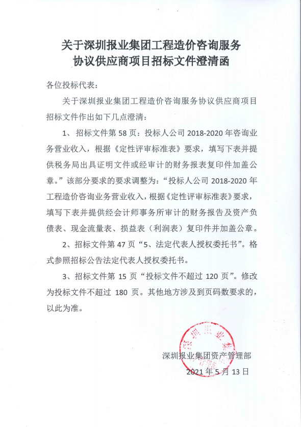 關(guān)于深圳報業(yè)集團(tuán)工程造價資訊服務(wù)協(xié)議供應(yīng)商項目招標(biāo)文件澄清函