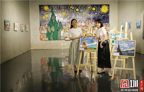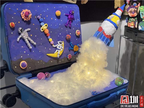 騎著小白兔在天上看四大名樓、把四大名樓帶到宇宙里、在四大名樓上面遇見天空之城……現(xiàn)場,幾幅畫作吸引觀賞者駐留觀看。“歷代文人墨客用千古名篇頌揚四大名樓,而這個《中國四大名樓》系列作品,孩子們將與深圳共成長的切身感受,與歷史畫卷中的四大名樓發(fā)生靈感碰撞,以簡單的水墨畫表現(xiàn)形式,呈現(xiàn)出不可思議的藝術(shù)效果?!弊髌分笇?dǎo)老師于雪在采訪時介紹說道,這一系列的作品,是三四年級的孩子創(chuàng)作,身高沒有很高,但是作品的畫幅很大,而且用的材質(zhì)是宣紙,比較容易破,因此孩子們在繪畫過程中也學(xué)會了調(diào)整身體的位置和紙張比例,以及更加小心翼翼地保護自己的畫作,這也是他們創(chuàng)作中有趣的過程。