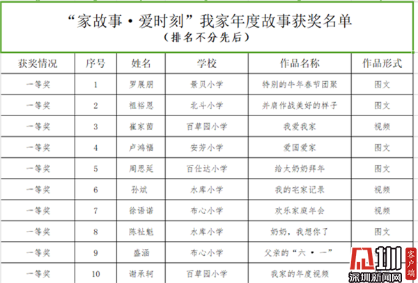 “家故事·愛時(shí)刻”我家年度故事獲獎(jiǎng)名單 。