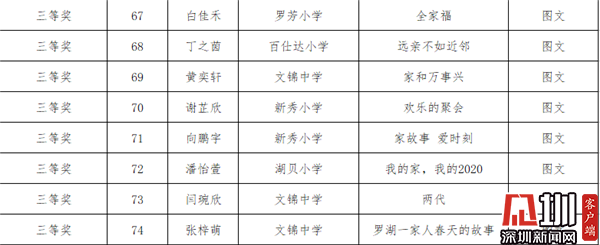 見圳客戶端·深圳新聞網(wǎng)2021年6月1日訊(記者 李慧)6月1日,羅湖區(qū)“家庭文明公益廣告”及“我家年度故事”征集活動(dòng)獲獎(jiǎng)名單公布,其中,18個(gè)“家庭文明公益廣告”和74個(gè)“年度故事”圖文作品獲獎(jiǎng)。