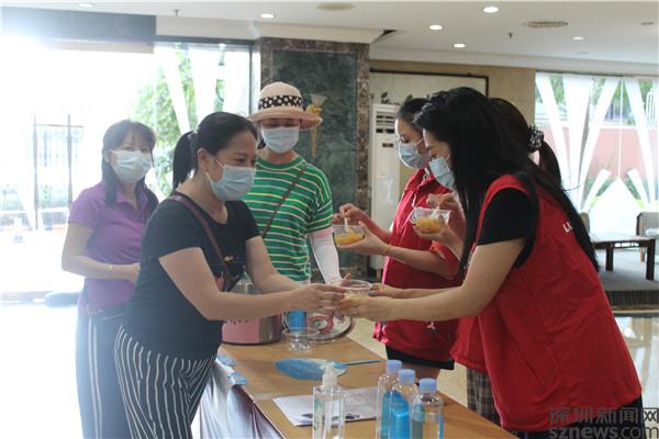 讀特客戶端·深圳新聞網(wǎng)2021年6月7日訊(記者 劉嘉敏 通訊員 楊紀(jì)歐)近日,炎炎烈日下,三位居民推著一輛平板車,車上放著兩個(gè)大鍋,鍋里裝著濃濃的糖水,正朝著老圍花園的出入口走來,她們是羅湖區(qū)桂園街道老圍社區(qū)老年人協(xié)會(huì)的會(huì)長(zhǎng)蔡?hào)|風(fēng)和委員賴秀文、陳艷芳,要給守衛(wèi)在老圍花園和名仕閣5個(gè)出入口的社區(qū)工作人員、社工和志愿者們以及保安員送上糖水,以表達(dá)他們對(duì)疫情防控的支持和參與抗疫的決心。