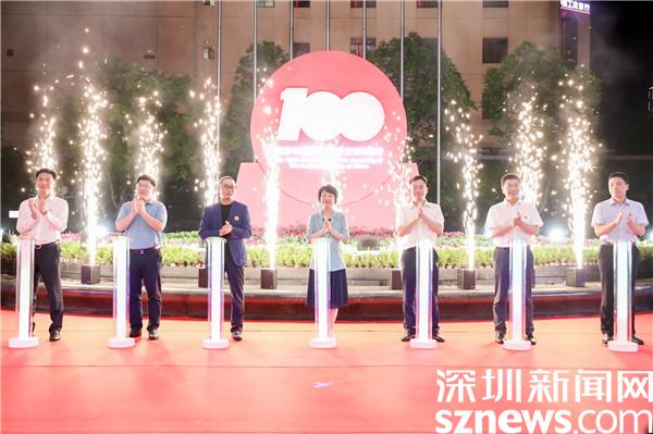 隨著參會(huì)領(lǐng)導(dǎo)和嘉賓按下儀式啟動(dòng)鍵,羅湖地標(biāo)建筑京基100被“點(diǎn)亮”,滾動(dòng)顯示“百年華誕 紅動(dòng)一百”、“崢嶸歲月 百年風(fēng)華”祝福語(yǔ),噴泉廣場(chǎng)亮如白晝,映入觀眾眼中,現(xiàn)場(chǎng)發(fā)出陣陣贊嘆聲,將慶祝的氛圍推向高潮。