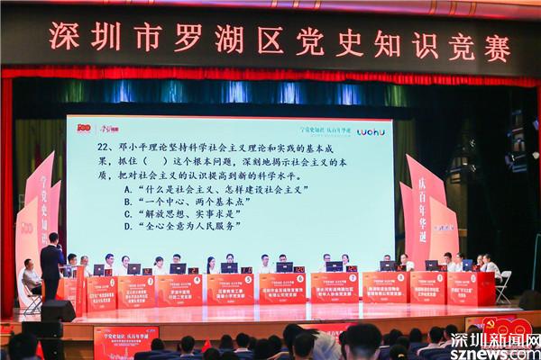 讀特客戶(hù)端·深圳新聞網(wǎng)2021年7月10日訊(記者 李慧 通訊員 劉文新 胡嘉雯 黃麗娜 陳章琦 )2021年,中國(guó)共產(chǎn)黨迎來(lái)百年華誕。為深入貫徹落實(shí)習(xí)近平總書(shū)記在黨史學(xué)習(xí)動(dòng)員大會(huì)上“要做到學(xué)史明理、學(xué)史增信、學(xué)史崇德、學(xué)史力行”的重要講話(huà)精神,進(jìn)一步感悟黨的思想偉力,堅(jiān)定羅湖區(qū)黨員干部、群眾的信仰信念,7月9日,由羅湖區(qū)委黨史學(xué)習(xí)教育領(lǐng)導(dǎo)小組辦公室主辦的“學(xué)黨史知識(shí)慶百年華誕”黨史知識(shí)競(jìng)賽舉行。市委黨史學(xué)習(xí)教育第二巡回指導(dǎo)組組長(zhǎng)林苗、副組長(zhǎng)曾麗芬及全體成員蒞臨指導(dǎo)本次比賽。羅湖區(qū)委副書(shū)記、組織部部長(zhǎng)、政法委書(shū)記賴(lài)武,區(qū)委常委、宣傳部部長(zhǎng)呂漫妮,區(qū)委常委、區(qū)人武部部長(zhǎng)邱雪平,區(qū)人大常委會(huì)副主任、黨組成員王華生,區(qū)人民檢察院檢察長(zhǎng)徐猛出席活動(dòng)。