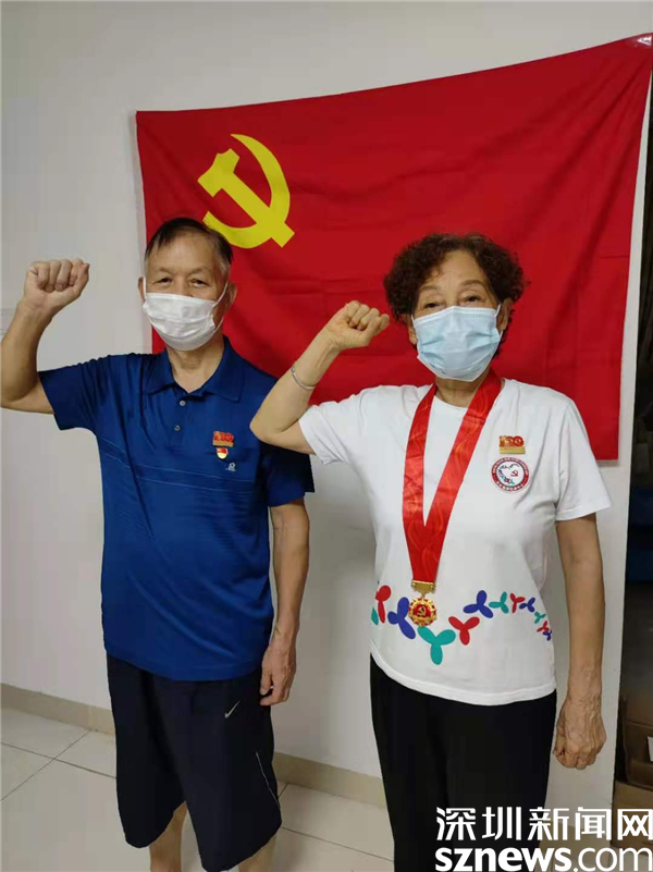 劉喜蘭是長嶺社區(qū)惠名花園的一位高達71歲的老黨員,“聽黨話、跟黨走”是她畢生的追求。7月1日這天,她收到黨組織頒發(fā)的“光榮在黨50年”紀念章,她已經(jīng)入黨52周年了。她的老伴龔訓虎及大兒子龔競也是黨員,龔訓虎大爺也已經(jīng)75歲高齡了,入黨接近50年。退休前,她和老伴都是光榮的人民教師,一生在湖南益陽教書育人,為社會培養(yǎng)了很多棟梁之才,2007年退休后,她和老伴來到深圳,繼續(xù)發(fā)揮余熱,積極參與社區(qū)義工活動。