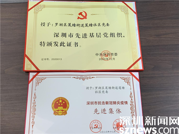 由于工作成績突出,他所在的蓮塘社區(qū)黨委獲得2020年“深圳市先進基層黨組織”以及2020年“深圳市抗擊新冠肺炎疫情先進集體”等榮譽稱號。