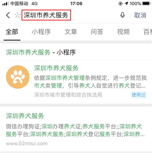 溫馨提示:尚未辦理養(yǎng)犬登記的市民朋友,可以登錄“廣東政務(wù)服務(wù)網(wǎng)”或通過微信搜索“深圳市養(yǎng)犬服務(wù)”小程序,足不出戶便可在線辦理養(yǎng)犬初始登記。養(yǎng)犬服務(wù)平臺(tái)可根據(jù)實(shí)際需求申請(qǐng)辦理初始、變更、注銷等登記事項(xiàng),還可進(jìn)行芯片預(yù)約、通過地圖查看養(yǎng)犬服務(wù)機(jī)構(gòu)(辦證點(diǎn)、犬傷門診)地址及聯(lián)系電話等。