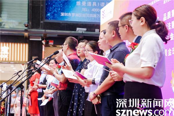隨后,水貝萬山珠寶文化產業(yè)園總經理陳曄平、金展珠寶廣場招商運營總監(jiān)王琳琳、特力珠寶大廈運營總經理崔戰(zhàn)紅、水貝金座運營中心總監(jiān)趙麗、水貝國際中心運營總監(jiān)廖燦榮等交易中心代表,以及周六福珠寶總經理謝明育、周大生珠寶行政副總經理周洪生、金大福珠寶副總裁丘航等珠寶品牌代表一同上臺宣誓,表達展示特色、推廣品牌、促進消費、助推增長的決心。